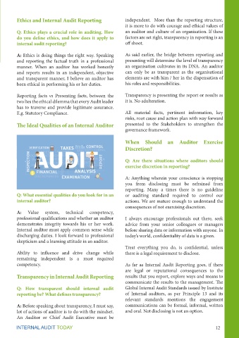 Ethics and Internal Audit Reporting independent. More than the reporting structure,