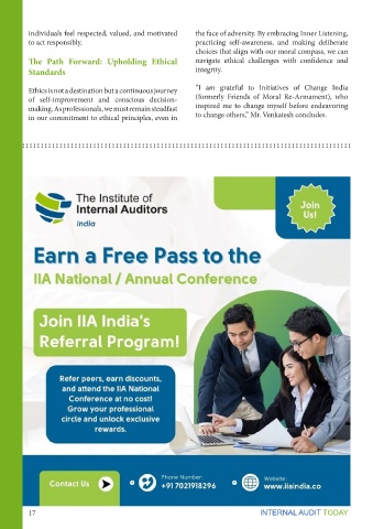 Ethics is not a destination but a continuous journey “I am grateful to Initiatives of Change India