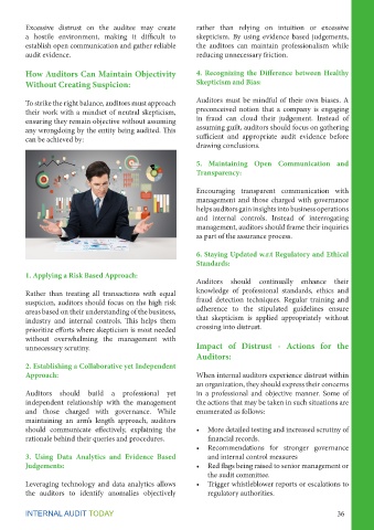 Excessive distrust on the auditee may create rather than relying on intuition or excessive