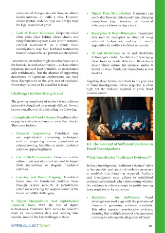 • Lack of Direct Witnesses: Corporate fraud • Encryption & Data Obfuscation: Fraudulent
