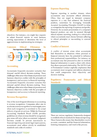 objectives. For instance, you might face requests ethical expense reporting, making it a critical area